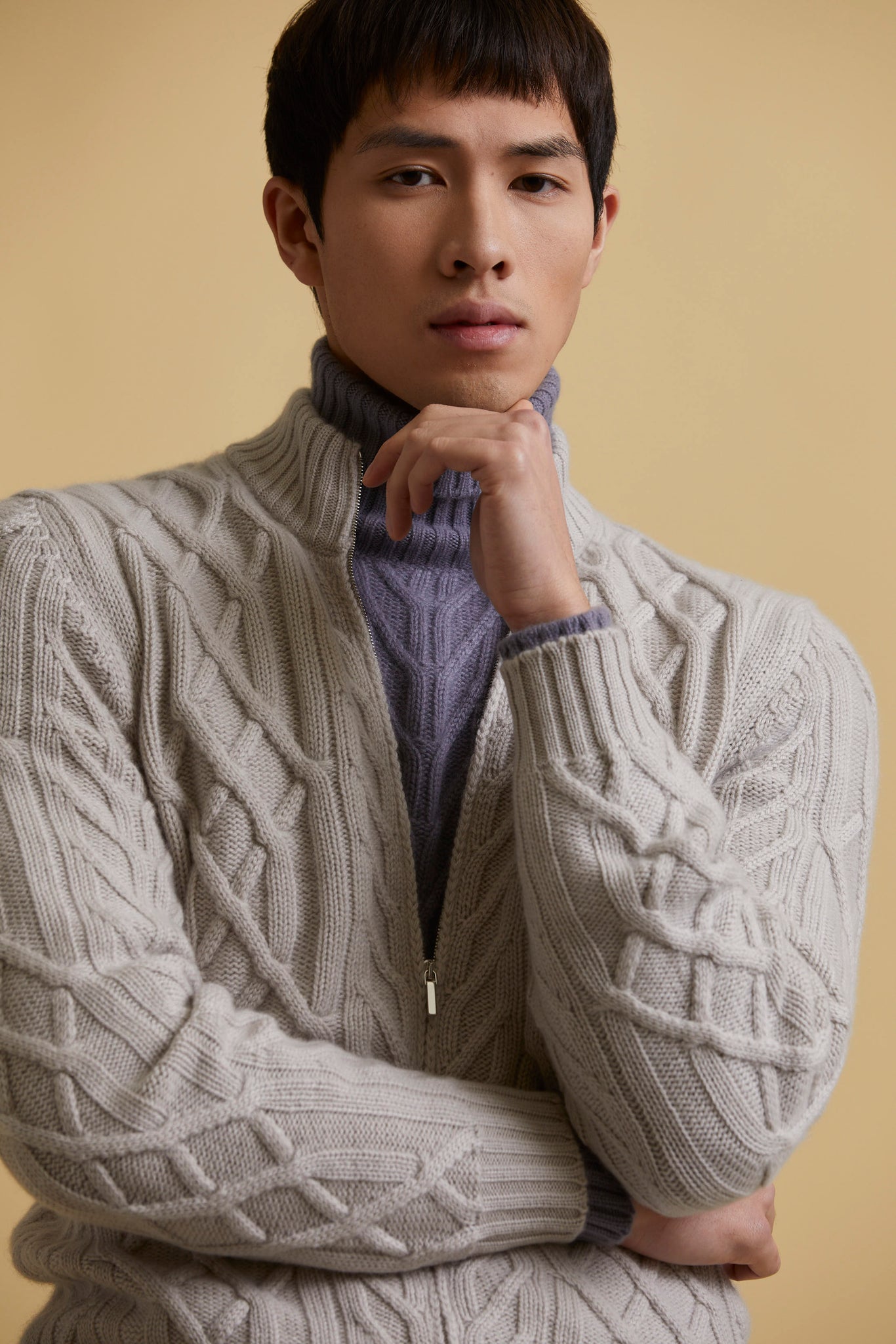Full-zip cashmere aran sweater